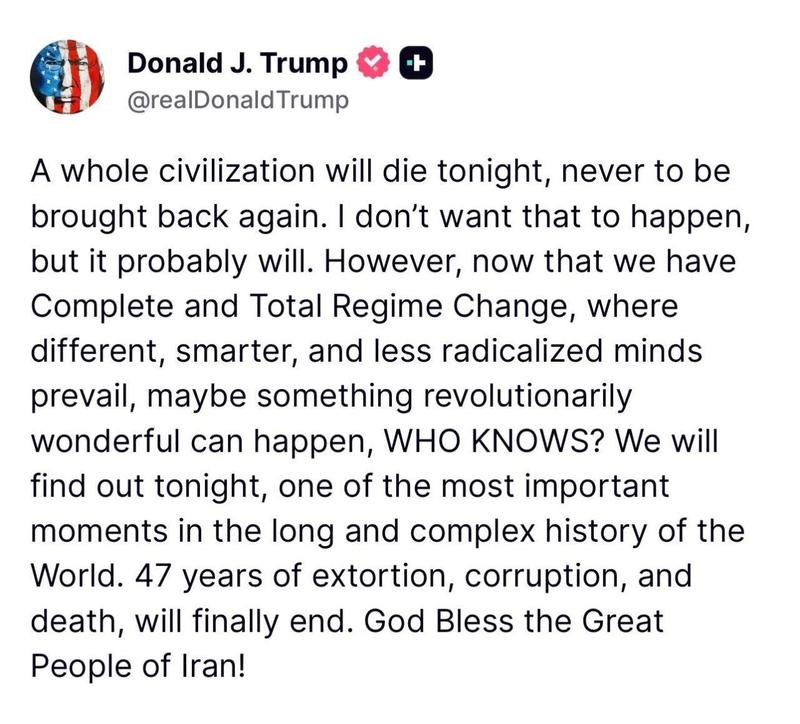 Another image spreading fast on Chinese social media is a screenshot of a Trump post claiming that “a whole civilization will die tonight” and linking that to regime change in Iran. Whatever the original political intent, the rhetoric landed badly. Online reaction in China was immediate: many users saw it as inflammatory, reckless, and politically foolish.