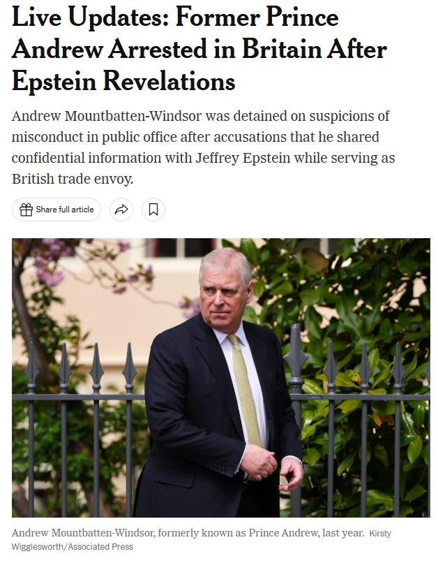 If you are reading the Western headlines this morning, you are seeing a story about a disgraced royal finally facing consequences for past indiscretions. The narrative is simple: Prince Andrew, or rather “Mr. Andrew Mountbatten-Windsor” as he is now known, has been detained. The context is almost exclusively focused on his association with Jeffrey Epstein and the moral failures that have plagued the House of York for a decade.